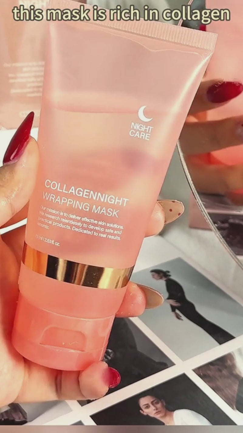 Easily apply the Collagen Night Wrapping Mask and enjoy hydrated, plump, and radiant skin in minutes. Your beauty ally, anytime!